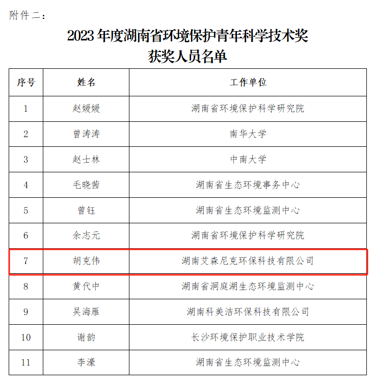 2023年,华体会网页版页面登入界面胡克伟同志荣获2023年度“湖南省环境保护青年科学技术奖“,这是对华体会网页版页面登入界面技术实力和人才优势的充分肯定。华体会网页版页面登入界面将继续发挥人才和技术优势,不断推进科技创新和人才培养工作,为公司的发展壮大和行业的技术进步做出更大的贡献。